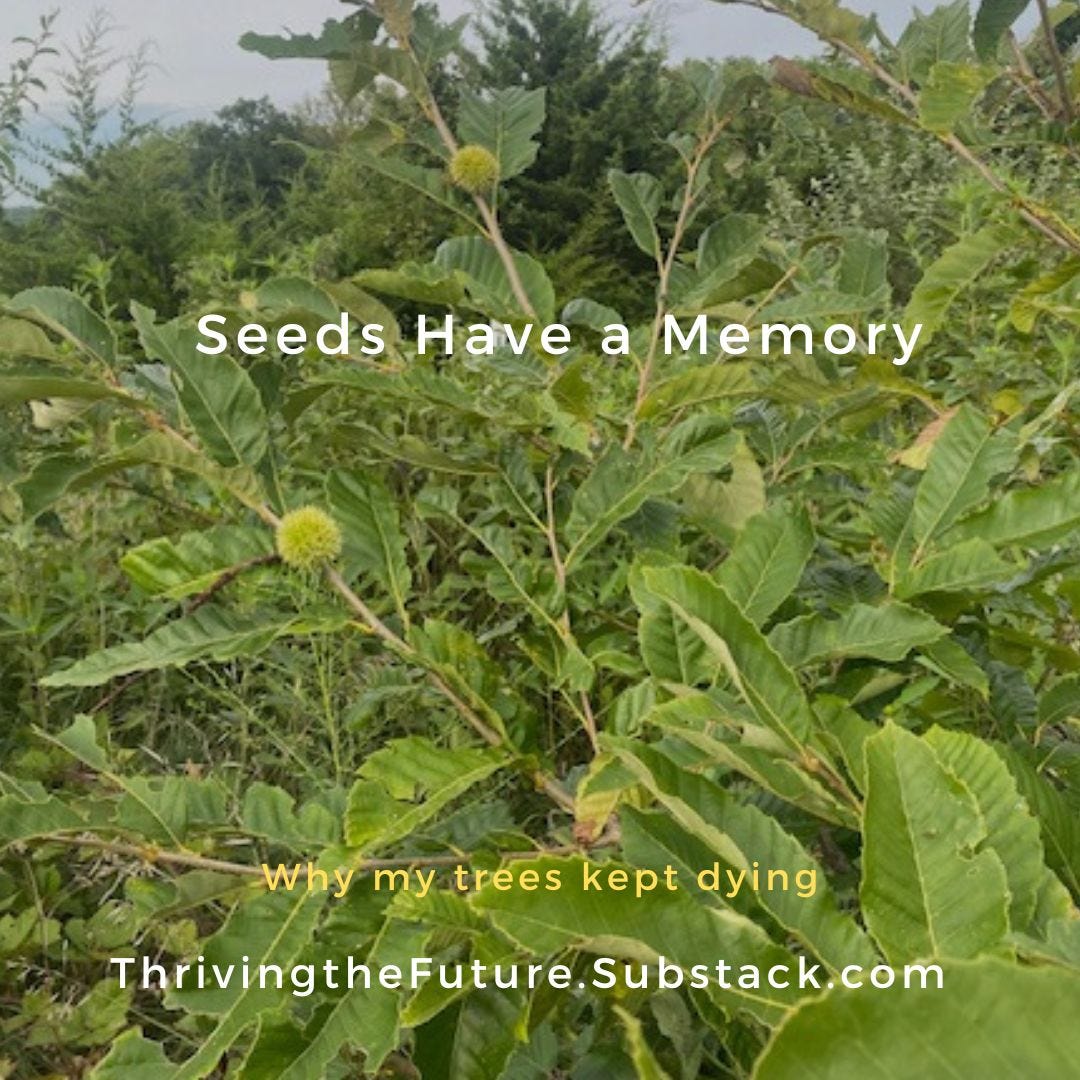 I grow chestnuts in Kansas. Why? Because the chestnuts I bought from elsewhere struggled or died. Now I collect local chestnut seeds and grow them into seedlings. I sell the extras that I don’t use. If you want Midwest Memory trees that will survive in Midwest Zones 5 -7, go to Grow Nut Trees.